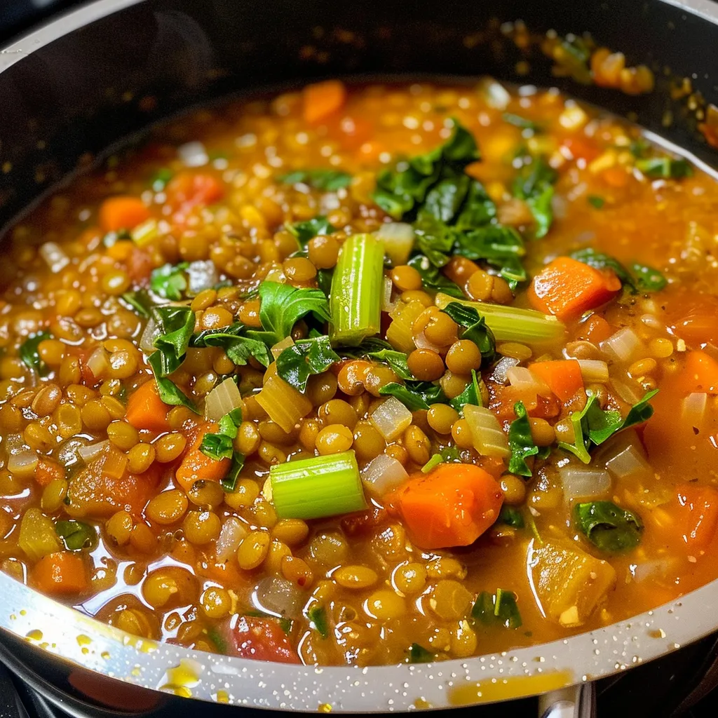 A hearty and nutritious soup combining lentils and fresh vegetables, perfect for a comforting meal.